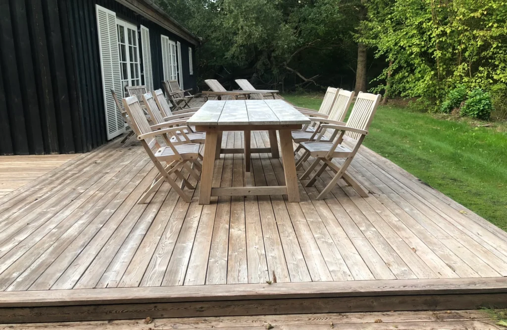 Træterrasser og møbler i hårdt træ, kan blive som nye efter en afrensning af alger og snavs. Vi udfører en tilpasset afspuling, så træet ikke skades undervejs. Vi bruger kun varmt vand og specialudstyr – Ingen giftig kemi.